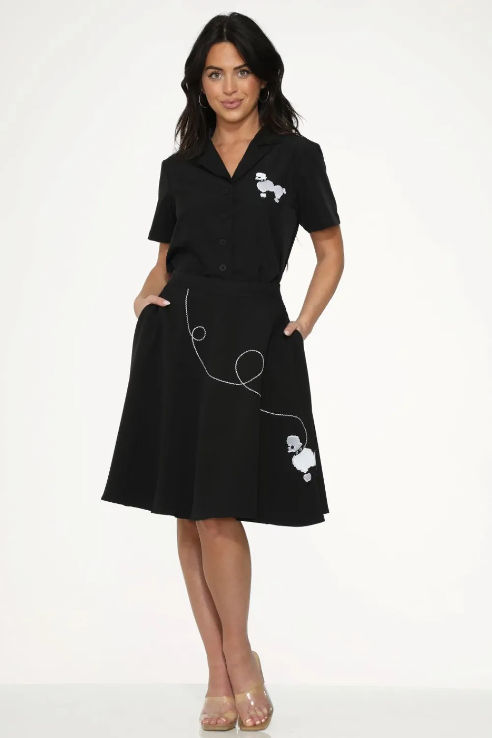 Serve up retro charm with a wink in the Orchid Bloom Black & White Embroidered Poodle Top. With its classic contrast design and adorable poodle embroidery, this vintage-inspired piece adds instant flair to high-waisted skirts, denim, or swing-ready moments. The soft, stretchy fabric makes it as comfy as it is iconic—perfect for soda shop stops or a spin around the jukebox.